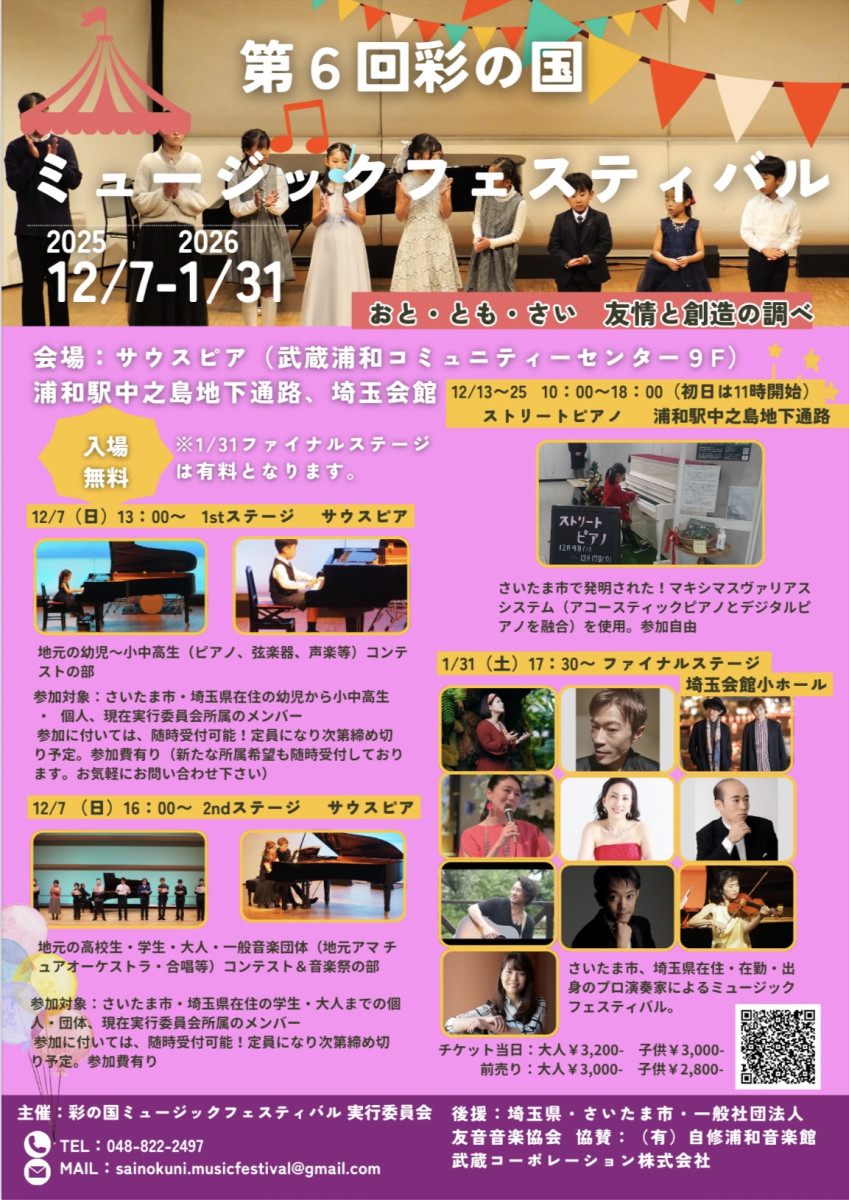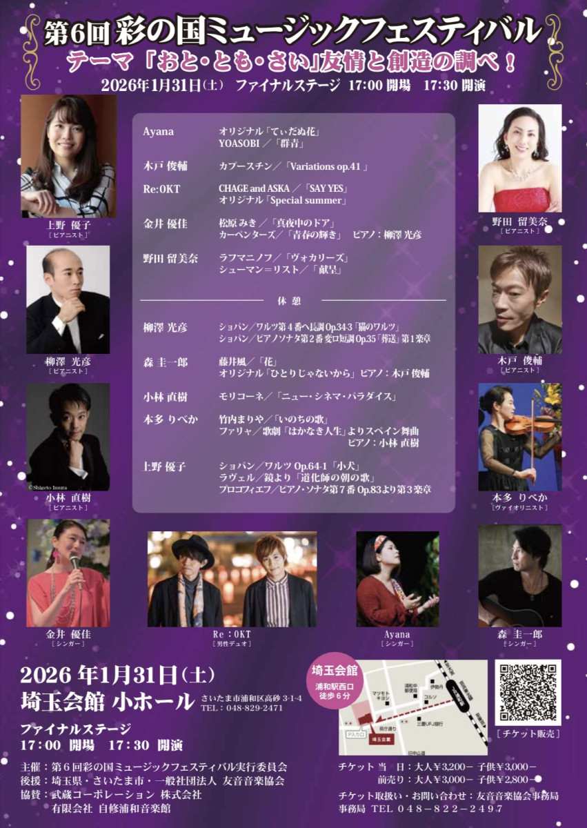 「第6回 彩の国ミュージックフェスティバル」に出演させていただくことになりました。