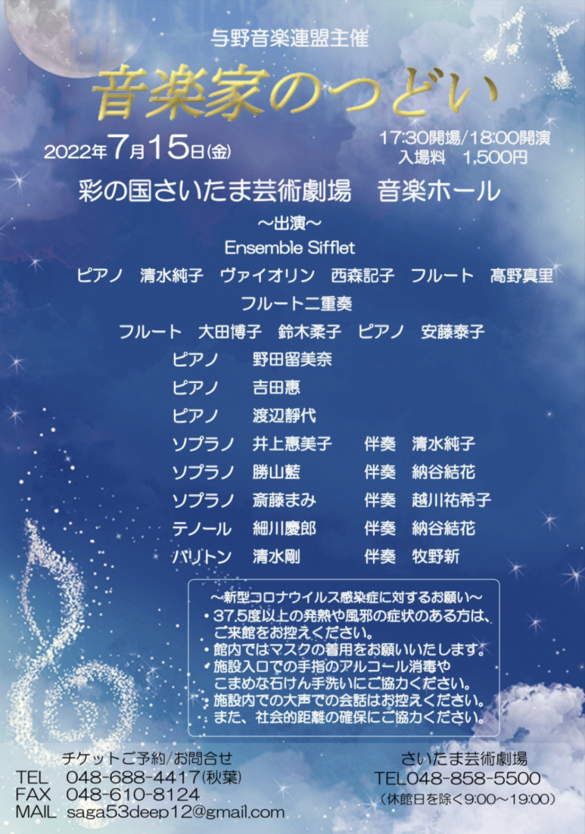 この度ご縁をいただき、与野音楽連盟主催の「音楽家のつどい」に出演することになりました!