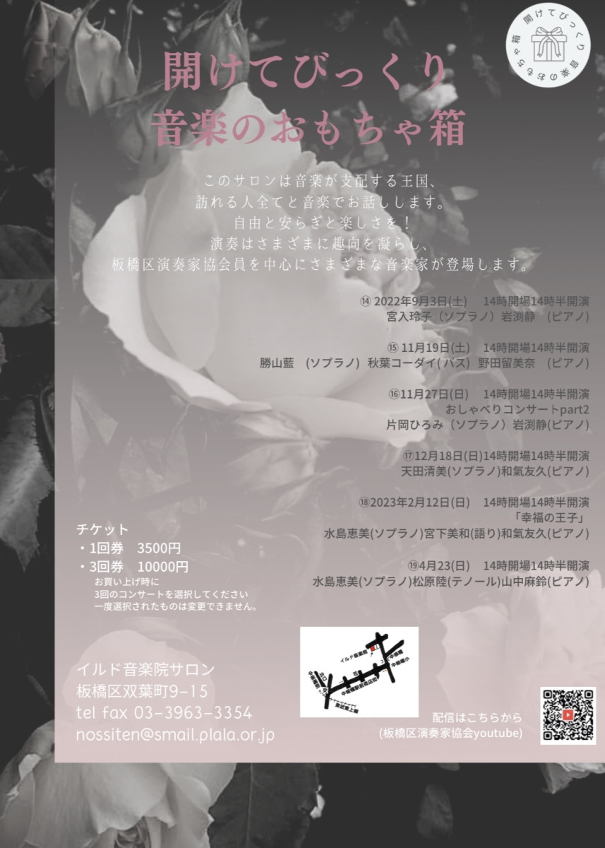 さて、この度ご縁をいただき、11月19日(土)14:30より、イルド音楽院サロン(中板橋)にて、