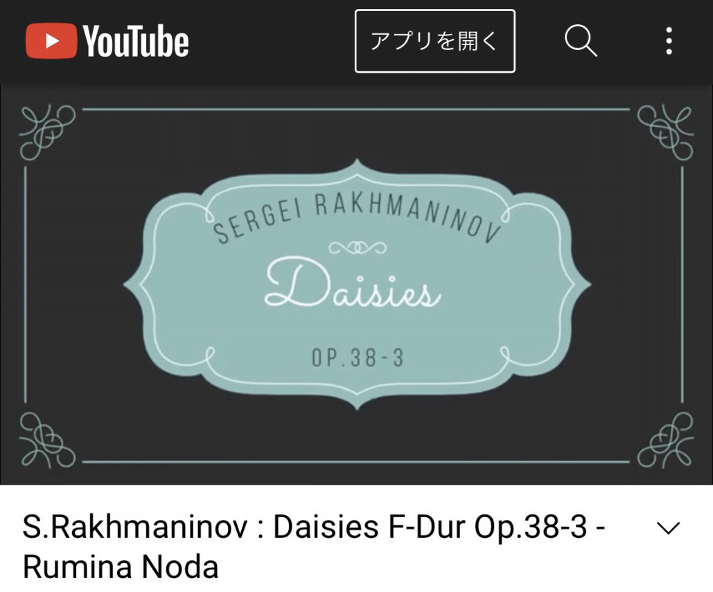 今日は先日の「音楽家のつどい」より、ラフマニノフ「ひなぎく」をYouTubeにアップしました!