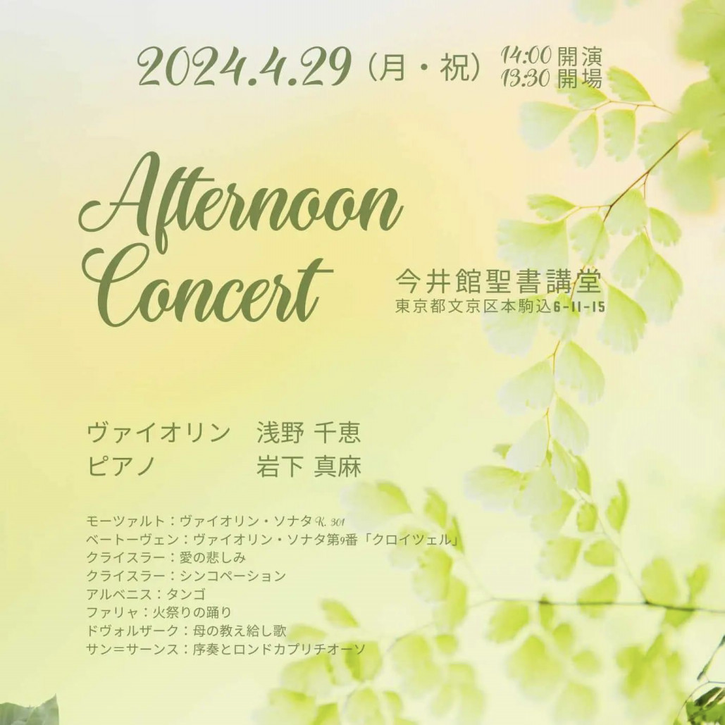 ヴァイオリニスト浅野千恵さんのリサイタルに伺いました。